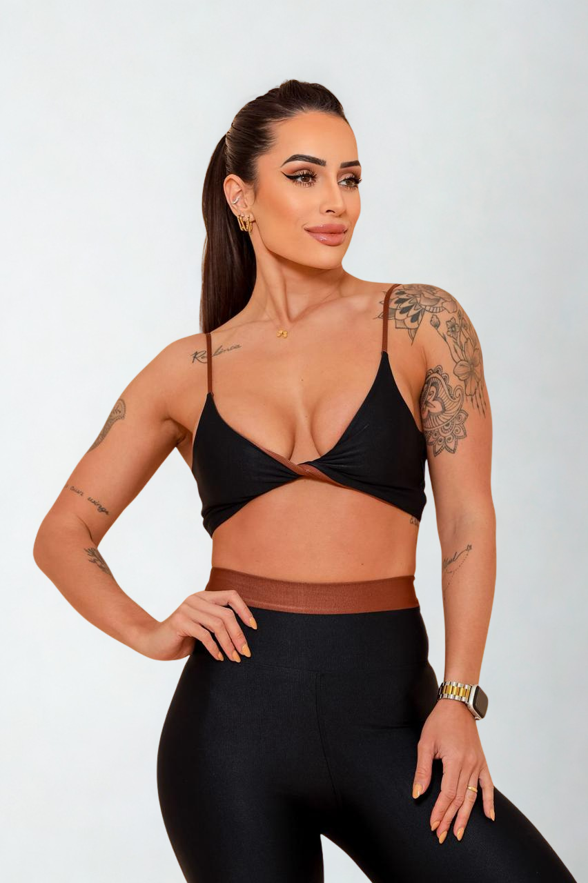COMO É: O top possui um detalhe frontal e costas cruzadas que fazem toda a diferença, enquanto os recortes valorizam sua silhueta. E não se esqueça do bolso funcional que é mais do que um detalhe – é prático para o seu dia a dia!