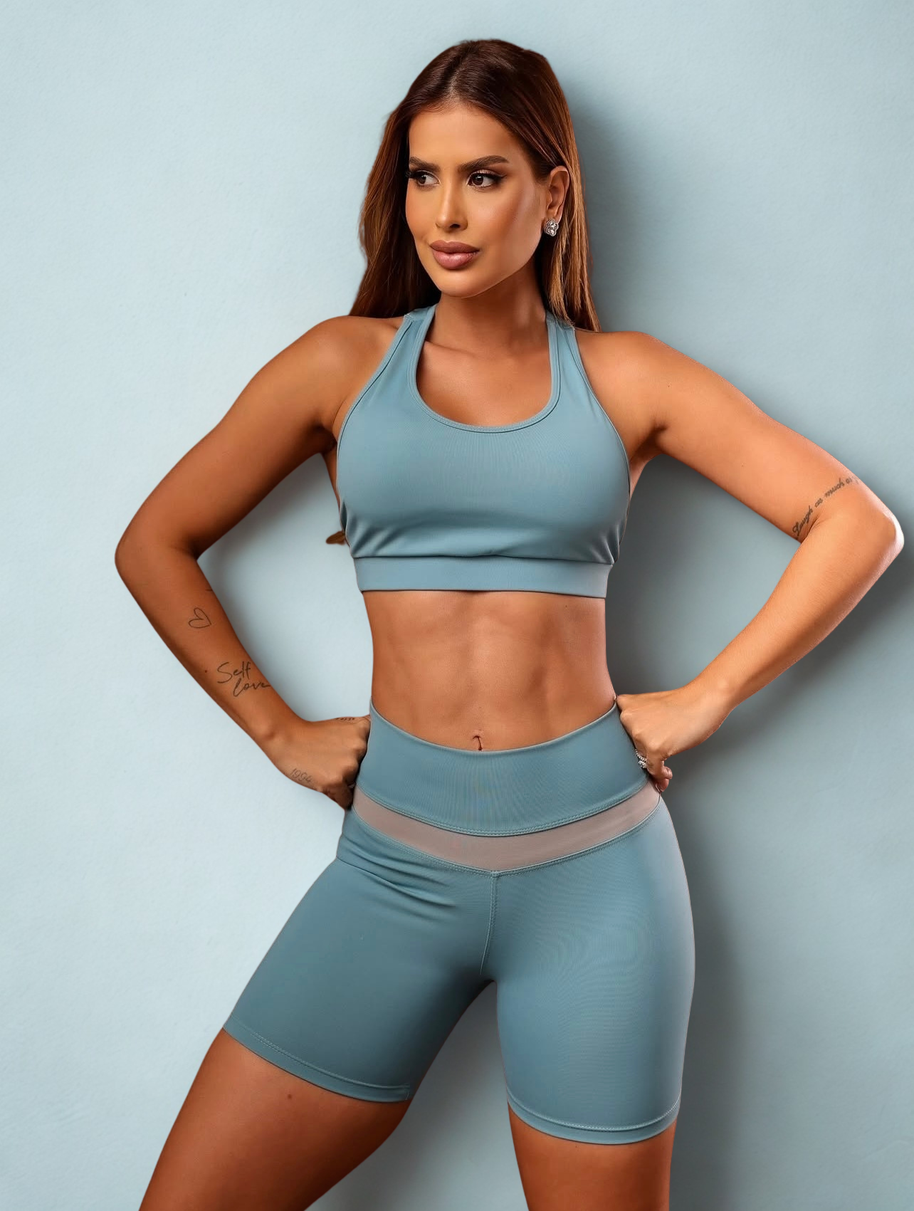 COMO É: O top apresenta um design moderno com detalhe frontal e costas cruzadas que fazem toda a diferença, enquanto os shorts possuem um corte que valoriza a silhueta. E o bolso funcional? É mais do que um detalhe – é super prático para o seu dia a dia!